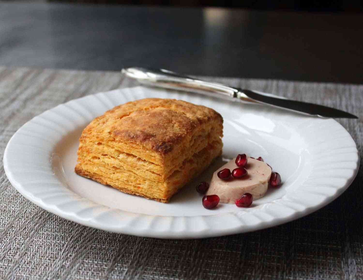 These sweet potato biscuits are a great way to use leftover Thanksgiving sweet potatoes, but they're even better right on that holiday table with the rest of the feast. By forming and folding dough, we develop beautifully buttery layers and avoid overmixing. These were delicious with the pomegranate spread.