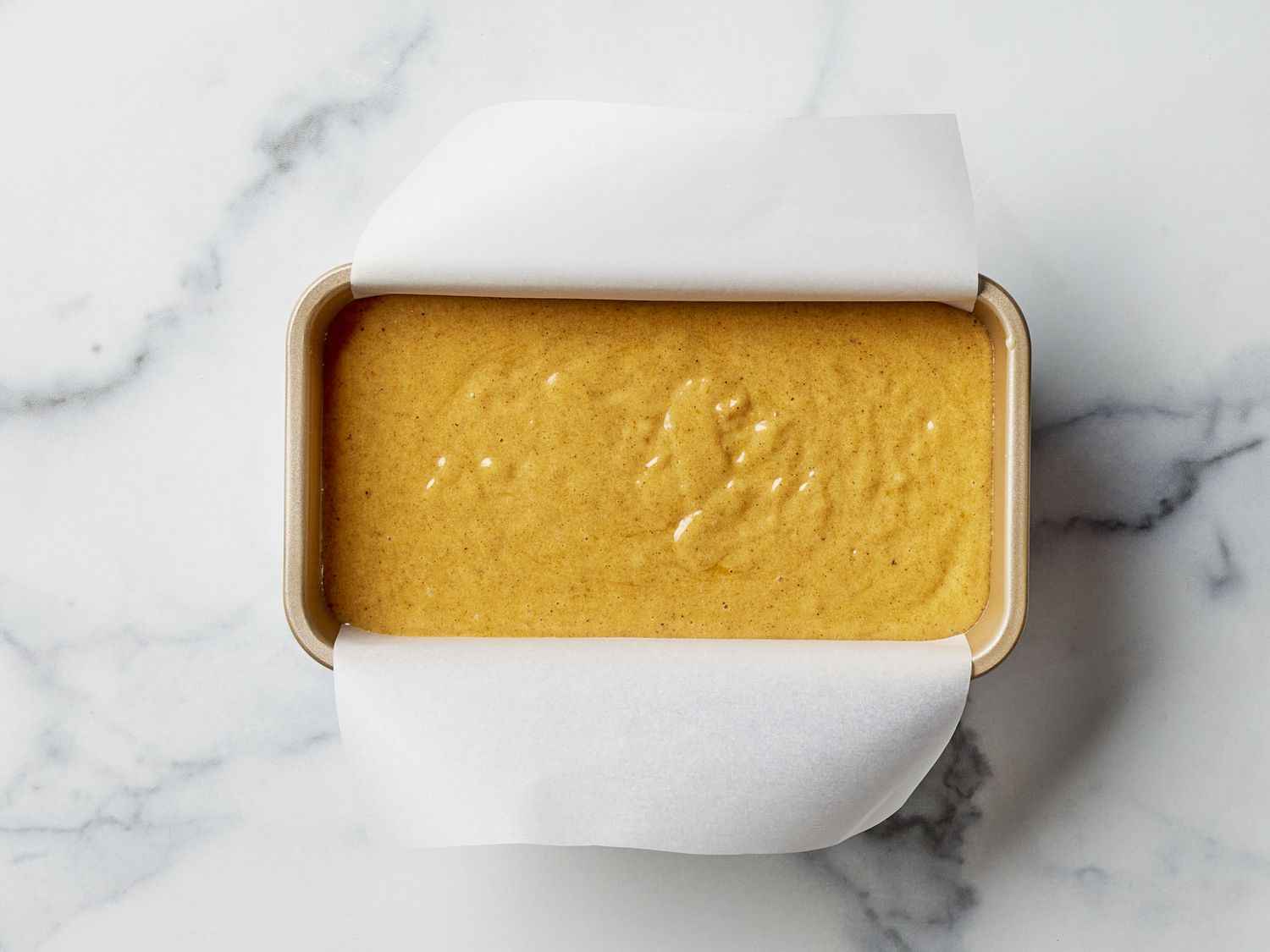 - Step 3:Pour batter into the prepared loaf pan. DOTDASH MEREDITH FOOD STUDIOS